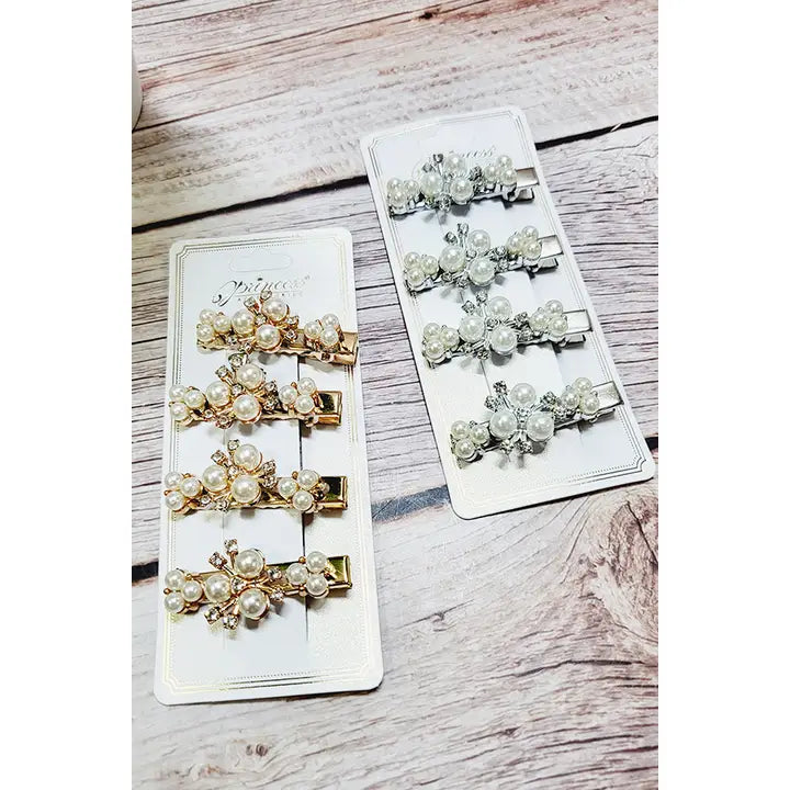4 pcs Pearl Accent Hair Clip Set. 1.875 inches