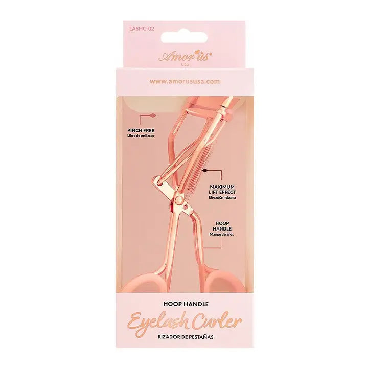 Rose Gold with Hoop Handle Eyelash Curler. Create beautifully lifted lashes with the Rose Gold with Hoop Handle Eyelash Curler. Designed to deliver maximum curl without pinching or tugging, this curler is made with high-quality materials and is adapted to suit all eye shapes. The comfortable hoop handle ensures a secure grip, while the included 2 extra silicone pads offer long-lasting performance, making it an essential tool for flawless lashes.