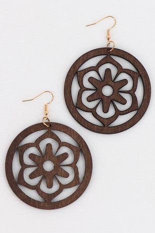 Bohemian laser cut wooden earrings. Lightweight dangle drop earrings. 2.325"x3.25" approx.
