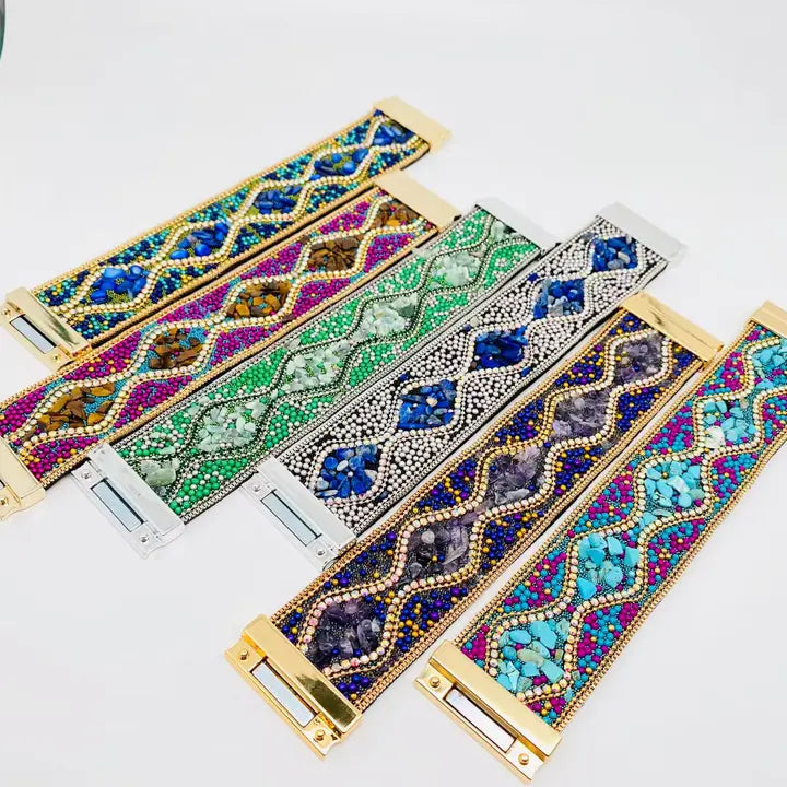 Boho Gravel Beads Magnetic Bangle