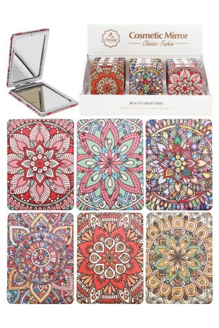 Boho Chic Mandala Floral Glitter Print Compact Travel Size Makeup Cosmetic Mirror -Dimensions: 3.5" * 2.5" * 0.3"