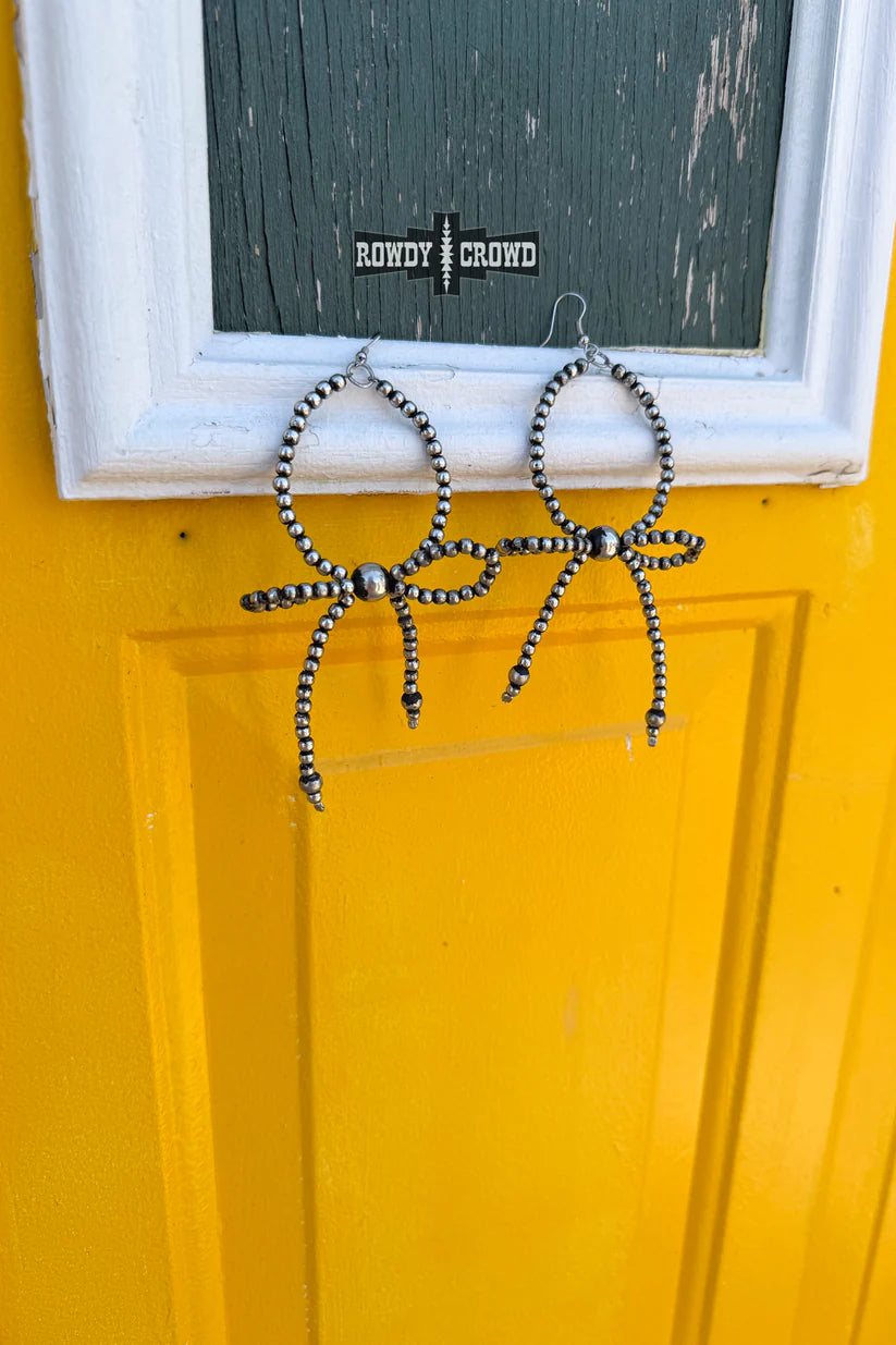 Our Cowgirl Pearl Earrings, where hoops and bows meet for the perfect addition to your collection. We have 2 options, solid silver for our more subtle cowgirls or our turquoise/silver combo for those who like to stand out. Each pair features a faux navajo pearl hoop with an adorable dangling bow. Dress up your every day fit or accent your nights out with our Cowgirl Bow Earrings. 100% Metal. Lightweight