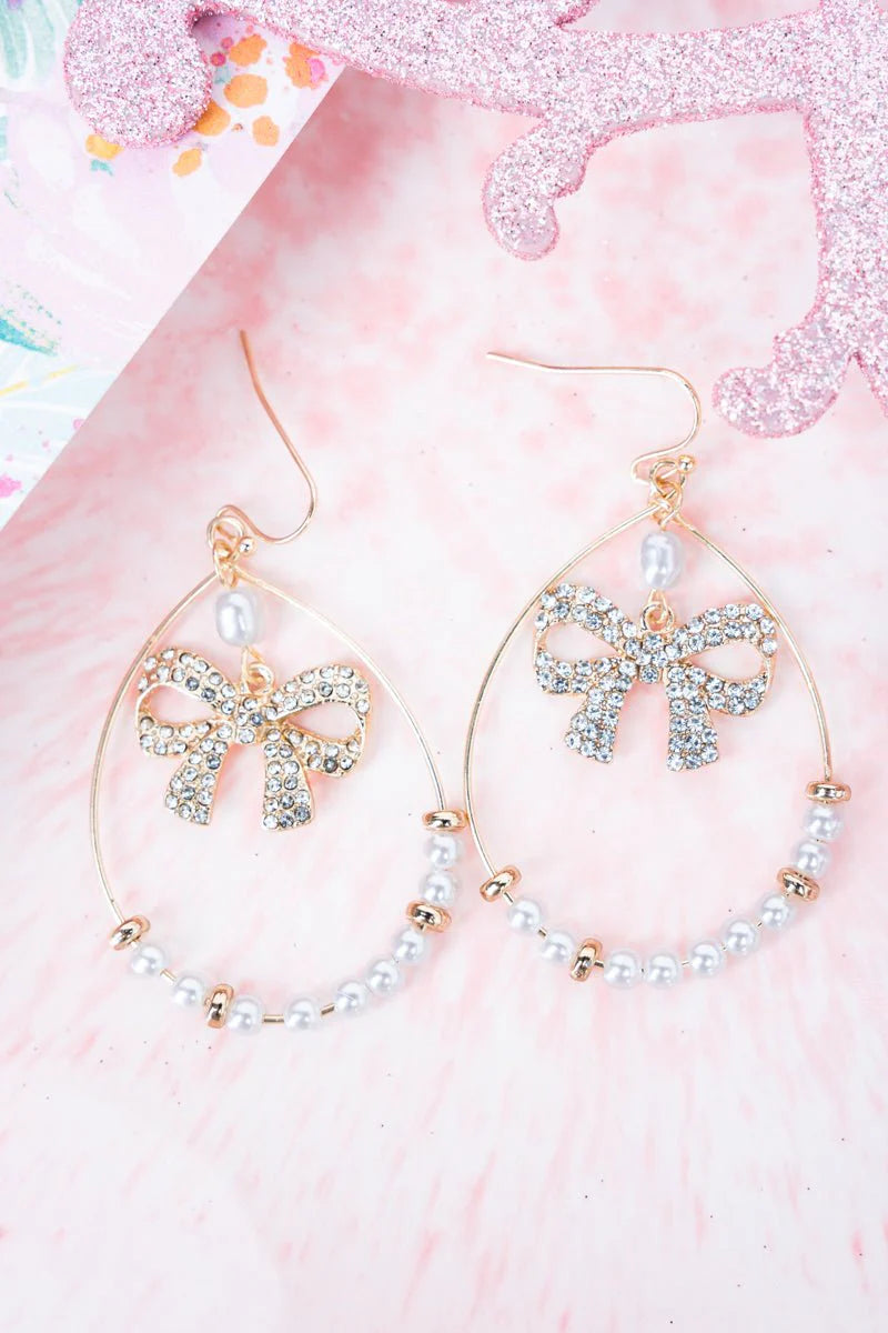 Add crystal bow and pearl teardrop earrings will add style to any outfit!