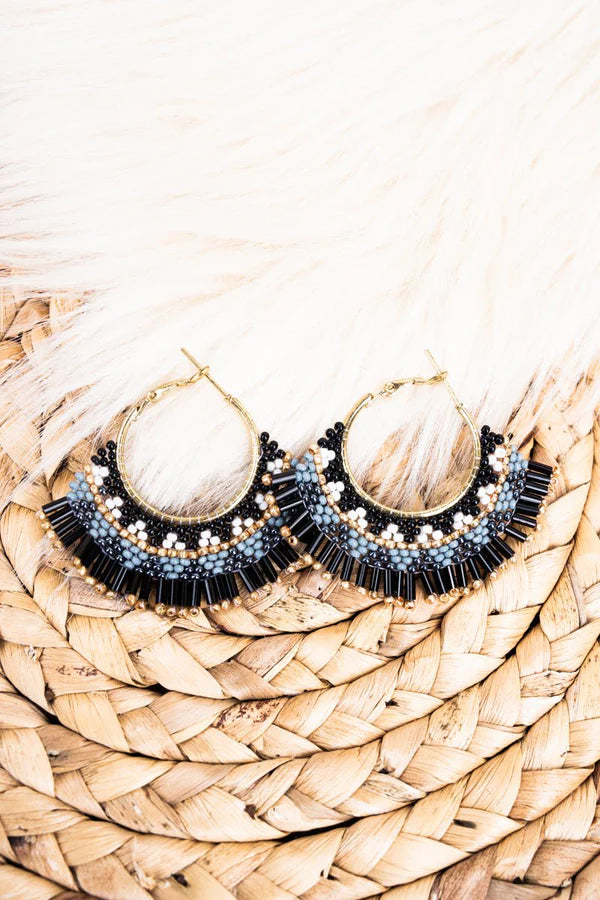 Complete your outfit with these trendy beaded hoop earrings. A must-have this season!