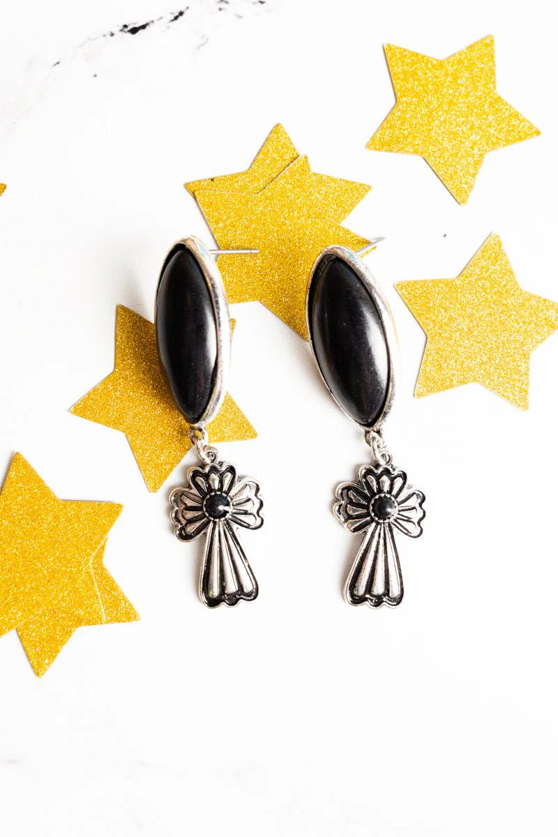 Choose your favorite pair to add western flair to any outfit! Burnished Silvertone, Faux Stone Oval Beads, Dangling Crosses with Textured Detailing, 2.25" Post Style Earrings, Lead Compliant