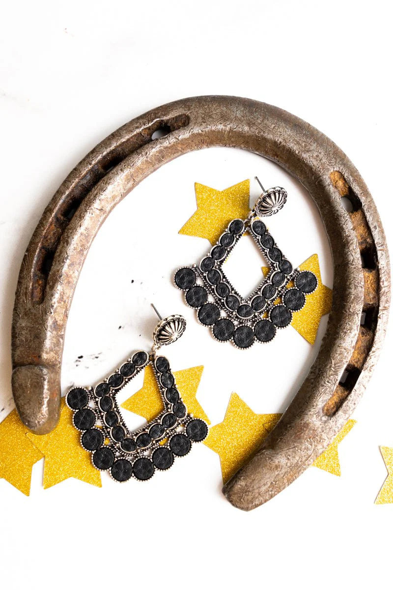 You'll look stunning with these earrings! 2.25" Post Style Earrings, Black Wood and Silvertone  Accents, Silvertone Hardware, Lead Compliant