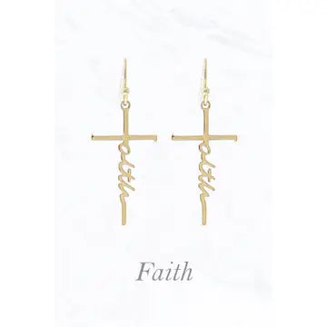 FAITH Cross Metal Earrings L : 1.4"(inch) Lead & Cadmium Compliant