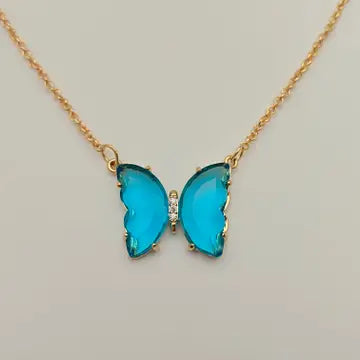 Glass Butterfly Pendant Necklace