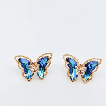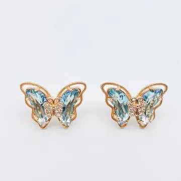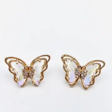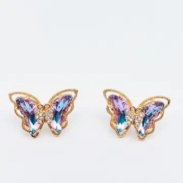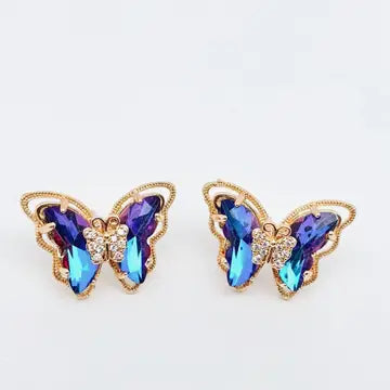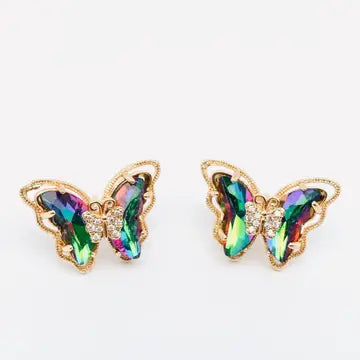 Add a touch of whimsy and elegance to your style with these stunning butterfly stud earrings. The gradient color design creates a beautiful and eye-catching effect, while the inlaid cubic zirconia stones add a sparkling touch. With their delicate and feminine appeal, these earrings are perfect for both casual and formal occasions. Upgrade your jewelry collection with these gorgeous gradient butterfly stud earrings that effortlessly combine charm and sophistication. Material: copper, cubic zirconia, glass. shape: butterfly size: 0.75inch. Nickel-free / Lead-free