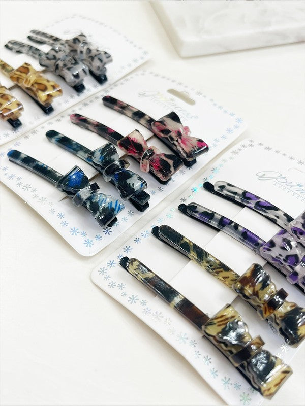 4-pcs Cute Leopard Bow Alligator Hair Clips -Small hair styling clips to create new hairstyles for party, dating, formal or casual occasions in daily use, suitable for washing face, cooking, make-up, shopping. Effortless beauty, quick and easy solution to hair styles for any occasion.