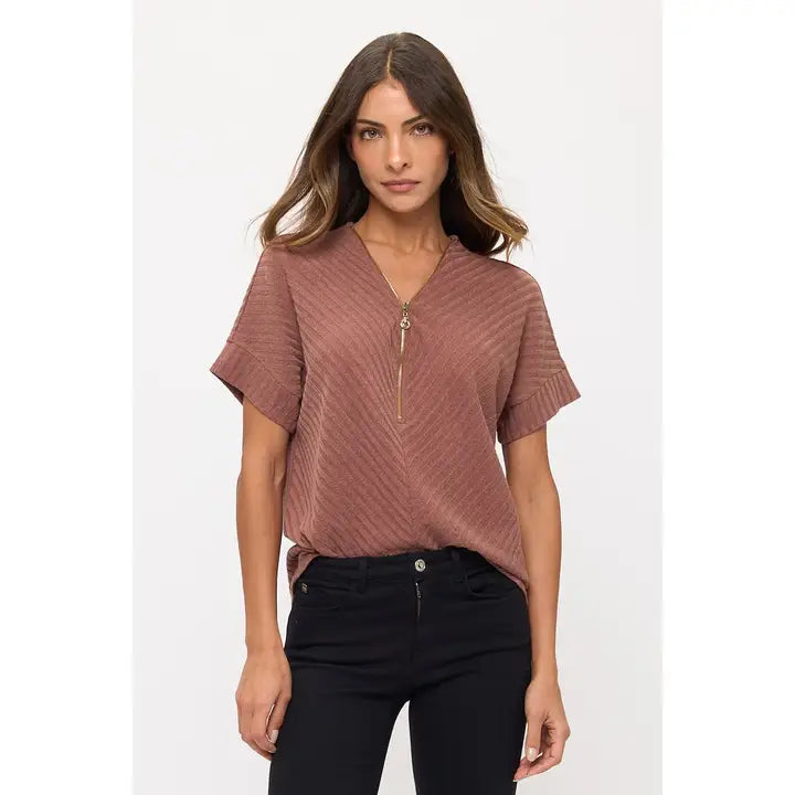 MIRU RIB O-RING PULLY ZIPPER SWEATER DOLMAN - Half-Zip - Lightweight and stretchy - O-RING detail - Dropped shoulders - Relaxed fit