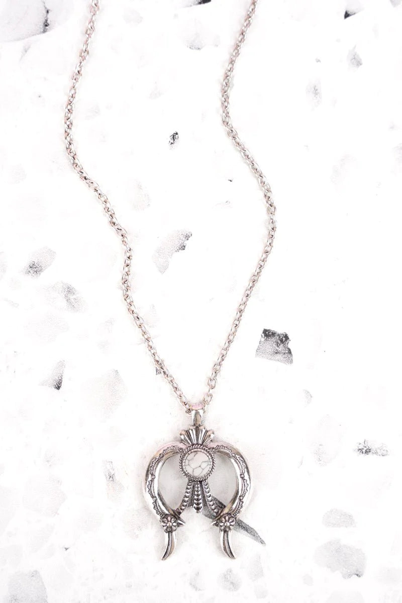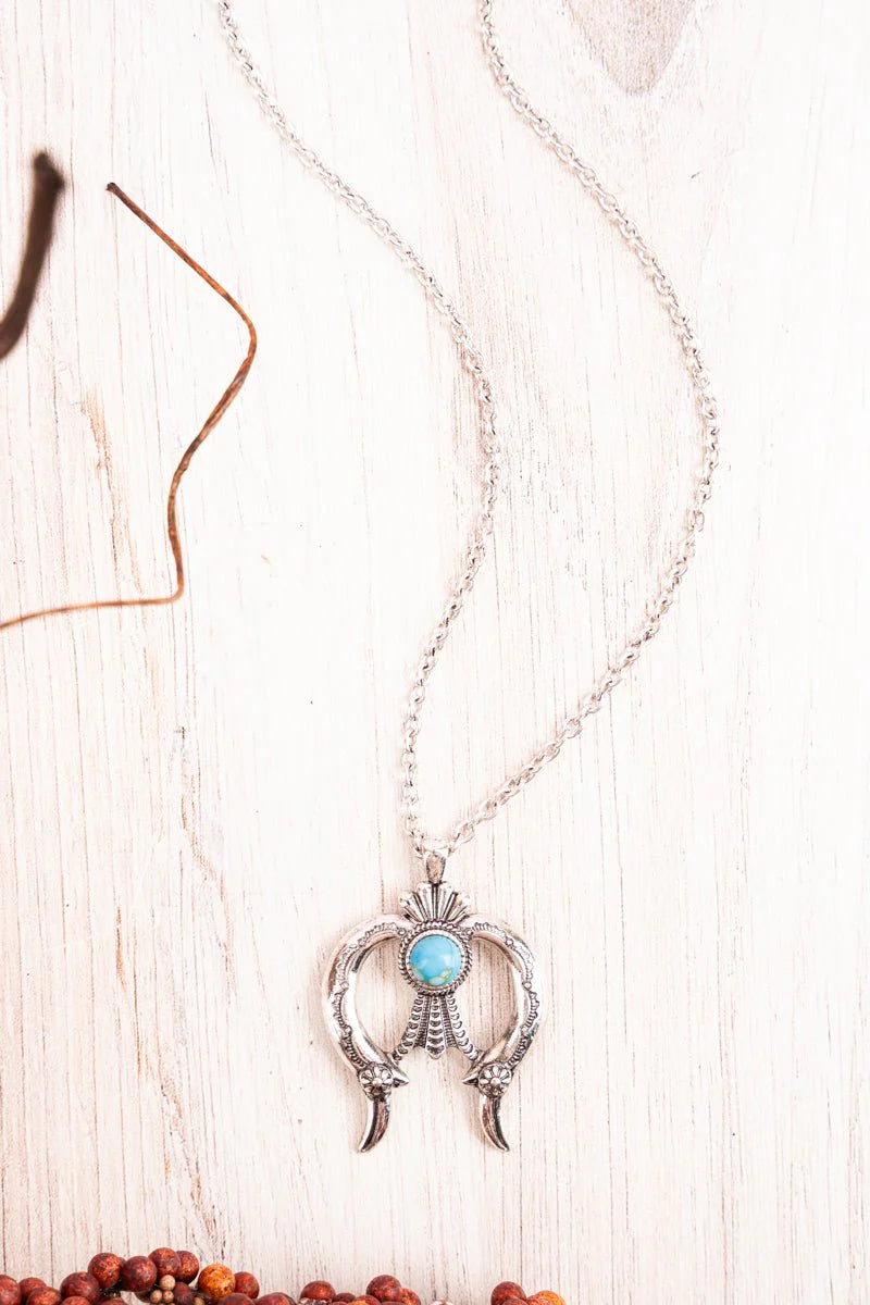 This incredible necklace will add a western vibe to any look! 18" Long Necklace with 3" Extender, Lobster Claw Closure, Burnished Silvertone, Faux Stone Accents, Naja and Squash Blossom Accent, 2" Pendant (Including Loop), Lead & Nickel Compliant