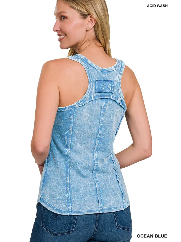 Washed Raw Edge V Neck Tank