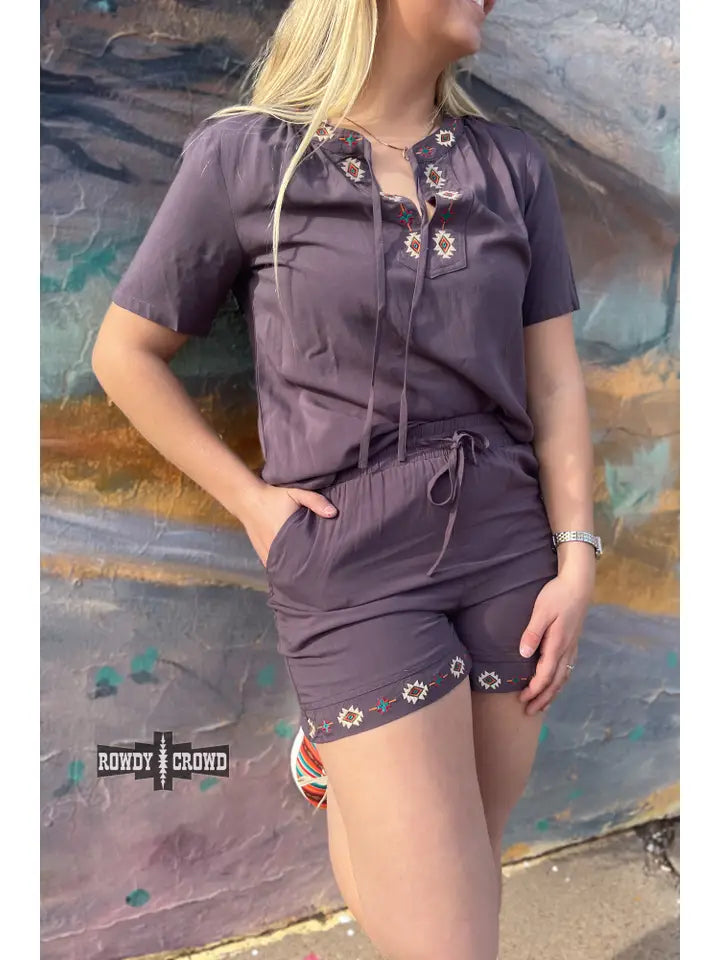 Introducing the Westbound Lounge Set, a comfortable and bold set sure to make a statement. Featuring an eye-catching neckline tie and vibrant Aztec icons, this set is perfect for those who want to stand out. Relax in style and comfort with the Westbound Lounge Set! 100% Rayon