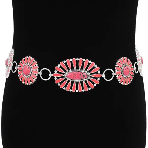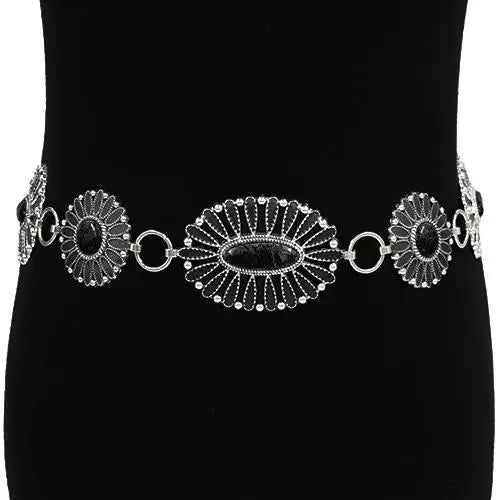 Western Style Concho Stone Chain Belt