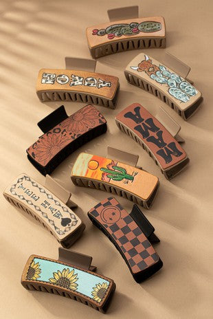 printed faux leather western cowboy hair claw clip game day: football, basketball, baseball size: 4 inch